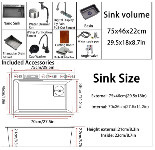 3.Installation Made Easy The kitchen sink comes with an overflow drain hole and three faucet holes with a 1 3/4" nickel-plated chrome drain. This ensures that the sink can be easily installed with a one-piece nonslip undermount installation for an easy and seamless look.