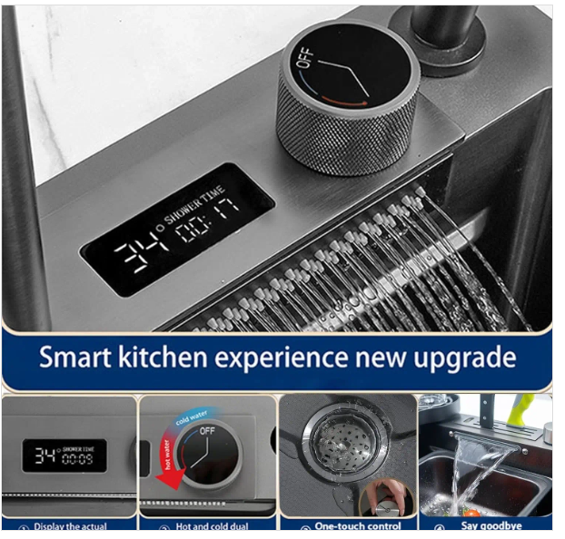 New Stainless Steel Single Bowl Farmhouse Sink Piano LED Light Waterfall Drop in Workstation Sink with Sliding Accessories 1.Provide OEM/ODM for mid-to-high-end brands. 2.Looking for global agents, decoration companies, and real estate contractors. 3. 7 days for sample making, 30 days for production and delivery