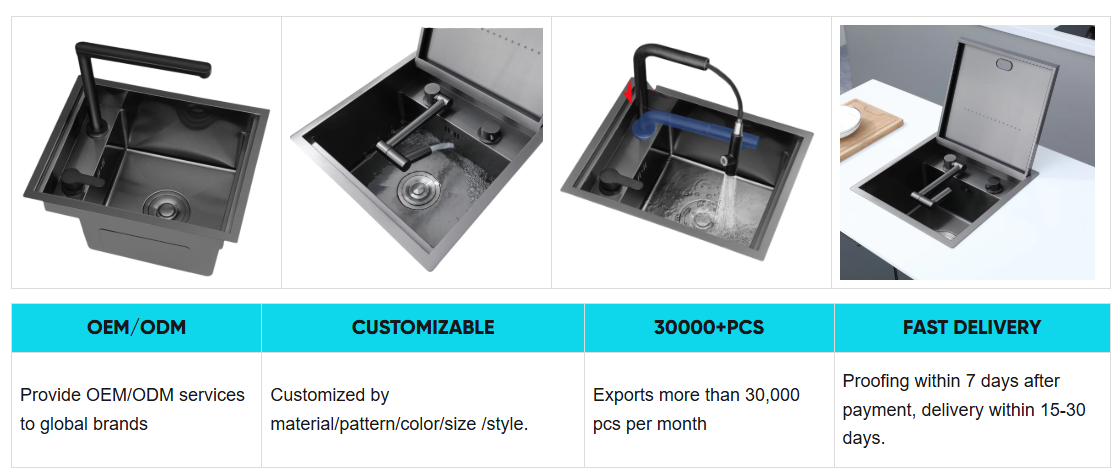Nano Black 304 Stainless Steel Single Bowl Outdoor Sink Rectangular Shape With Cover for Mini Bar & ls land Kitchen Design 1.Provide OEM/ODM for mid-to-high-end brands. 2.Looking for global agents, decoration companies, and real estate contractors. 3. 7 days for sample making, 30 days for production and delivery.